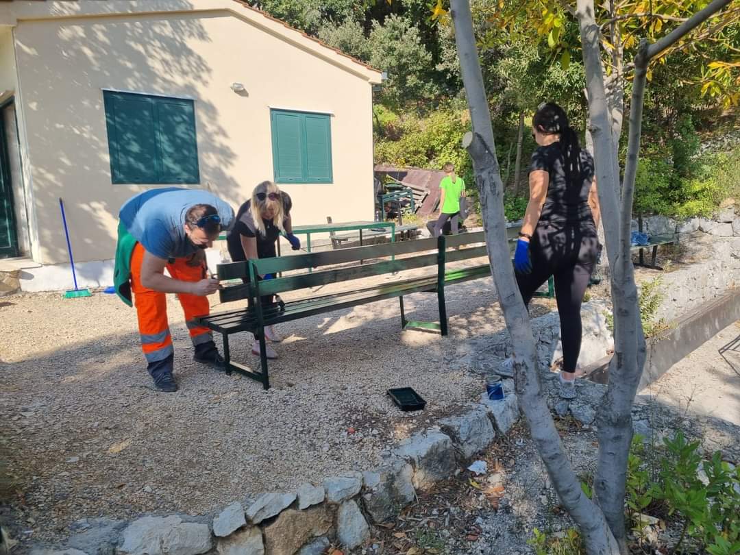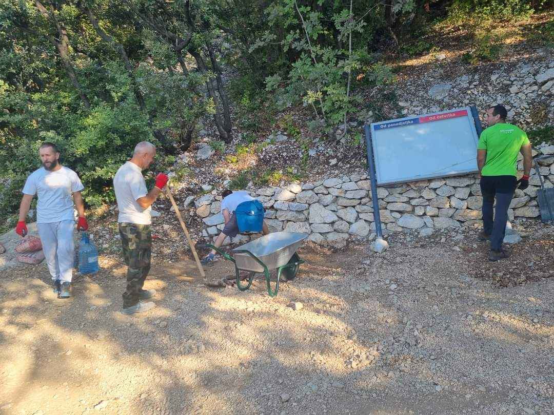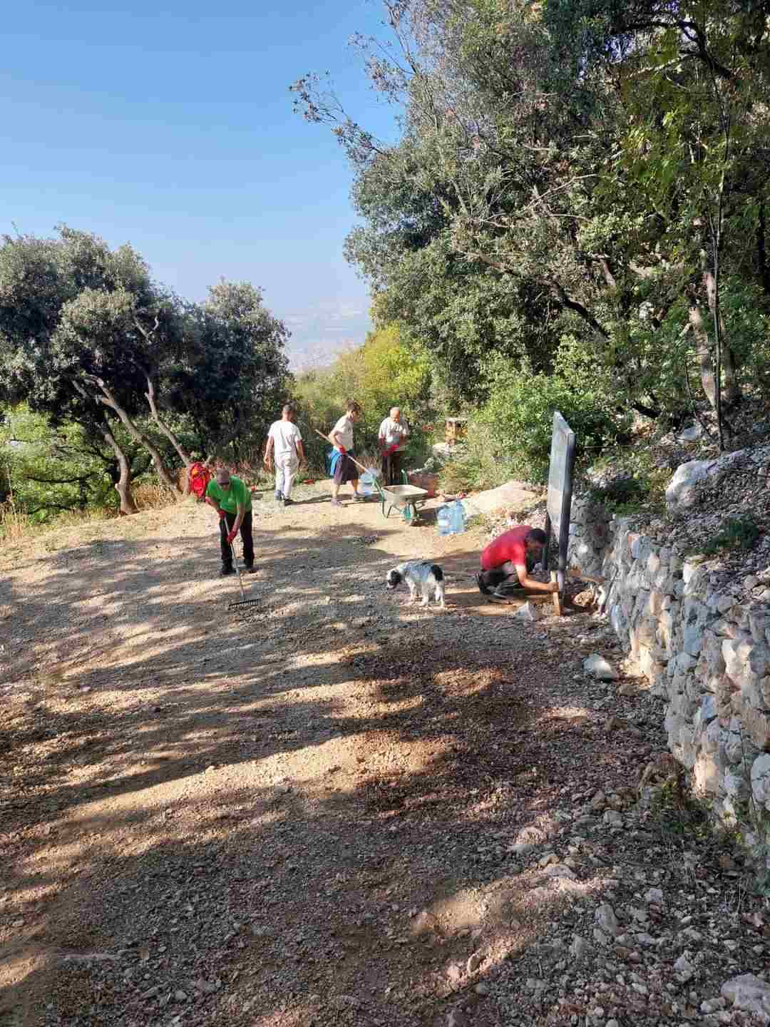 Do kraja smo opiturali klupe, stolove, ograde oko veteranske i doma, rasvjetne stupove, rampu, montirali vrata roštilja, postavili oglasni pano, očistili staze i obnovili markacije od PD Putalj do Sv.Luke i na Zabrani. Za to vrijeme su SKAC-ovi volonteri očistili gomilu ilegalno odbačenog otpada sa sipara iznad doma. Moramo posebno istaknuti naše male članove koji su spremno pomogli pri svim radovima.