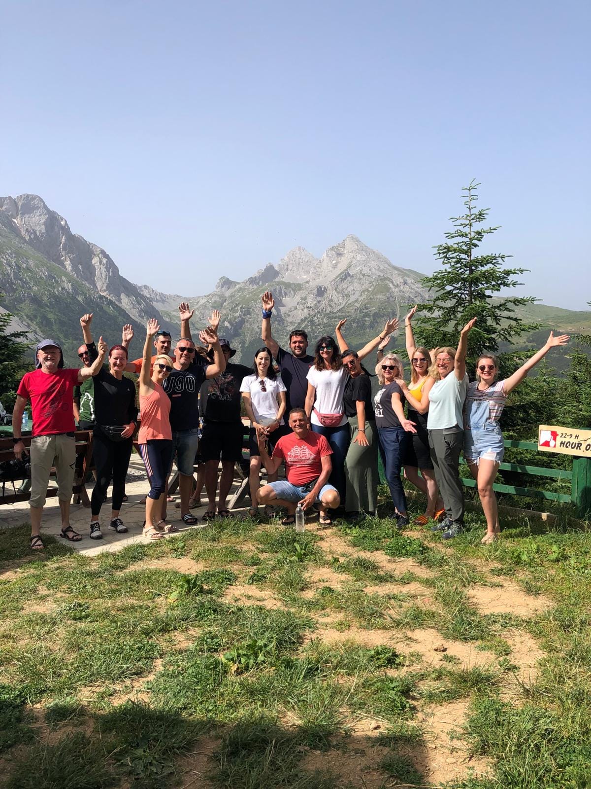 Naš nam je vozač autobusa Tomo, osim sigurne i zabavne vožnje, omogućio i internet u ključnim trenucima…za dijeljenje slika, naravno. Nakon 10 sati vožnje, stanki u Čapljini i Podgorici, stigli smo u Park prirode Komovi gdje smo upijali zapanjujuće poglede na prirodu, planine, izvore, brojne konje, ovce i krave te dvije patke uspinjući se prema smještaju Kobil do na 1700 metara nadmorske visine.